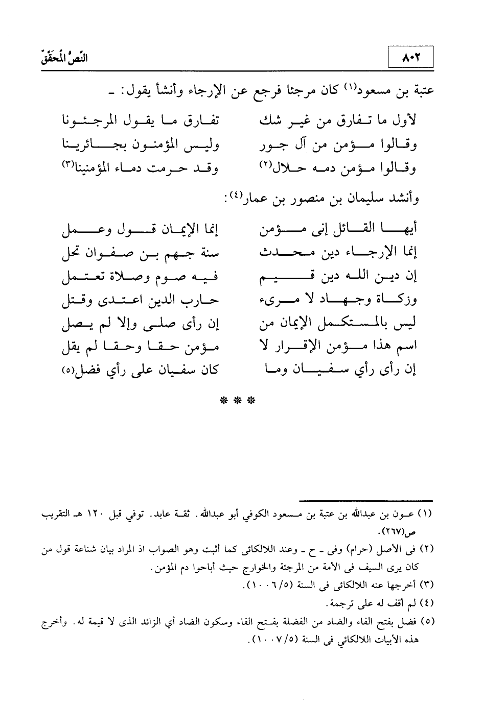 3 في الأصل (حرام) وفي - ح - وعند اللالكائي كما أثبت وهو الصواب إذ المراد بيان شناعة قول من كان يرى السيف في الأمة من المرجئة والخوارج حيث أباحوا دم المؤمن.
