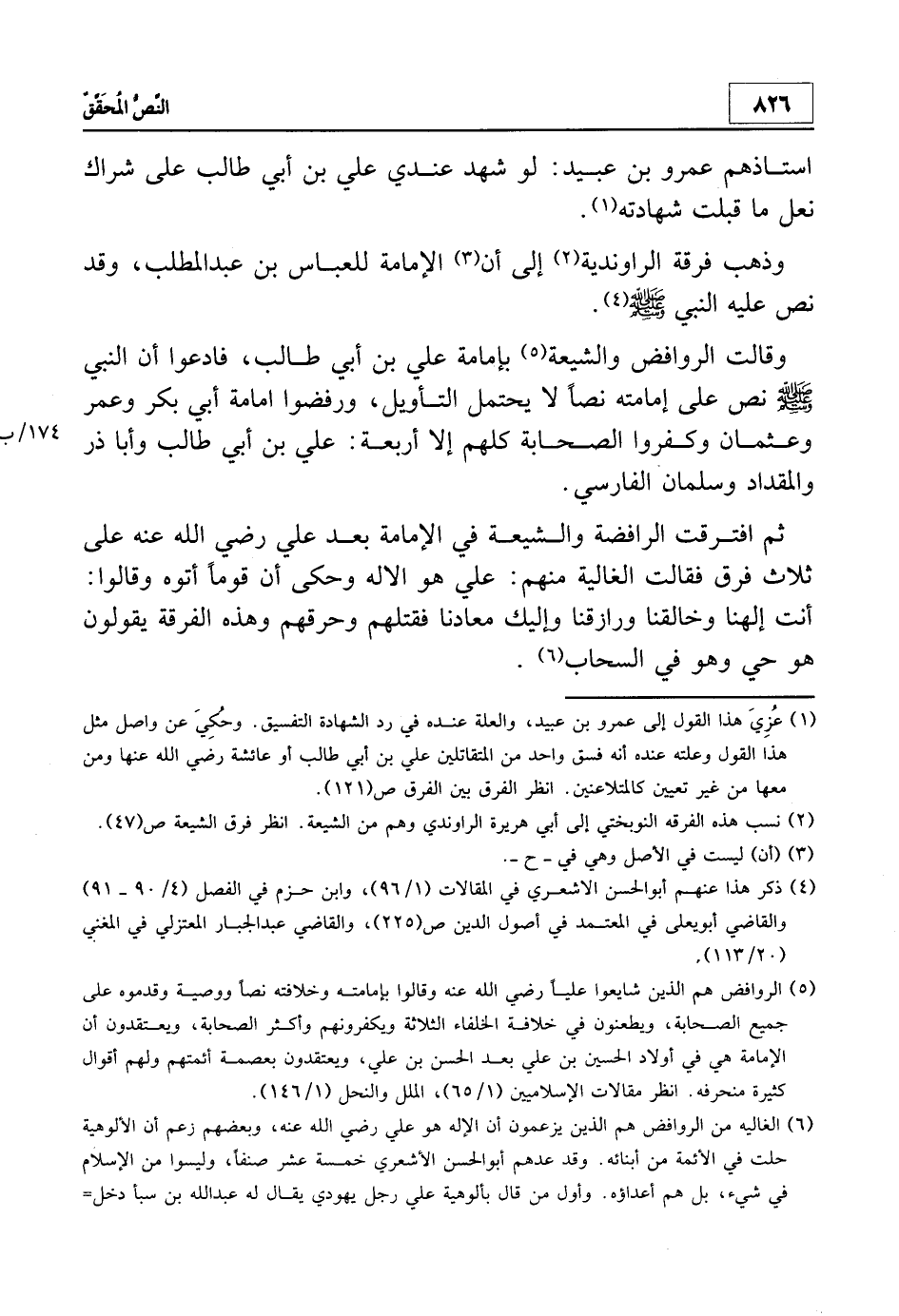 وذهب فرقة الرواندية2 إلى أن3 الإمامة للعباس بن عبد المطلب، وقد نص عليه النبي صلى الله عليه وسلم4.
