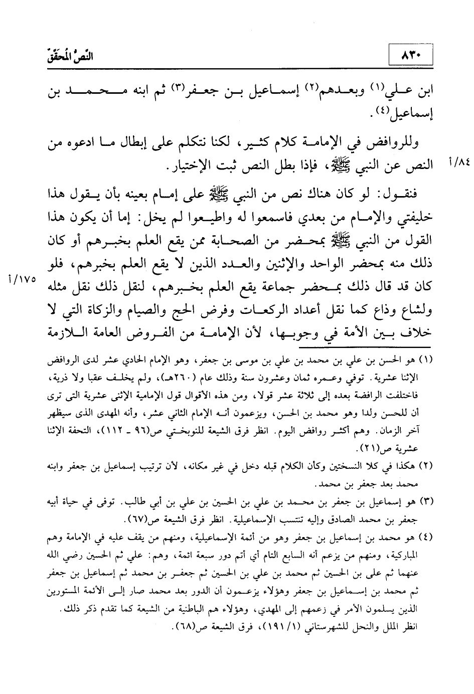 2 هو: إسماعيل بن جعفر بن محمد بن علي بن الحسين بن علي بن أبي طالب. توفي في حياة أبيه جعفر بن محمد الصادق وإليه تنتسب الإسماعيلية. انظر: فرق الشيعة ص 67.