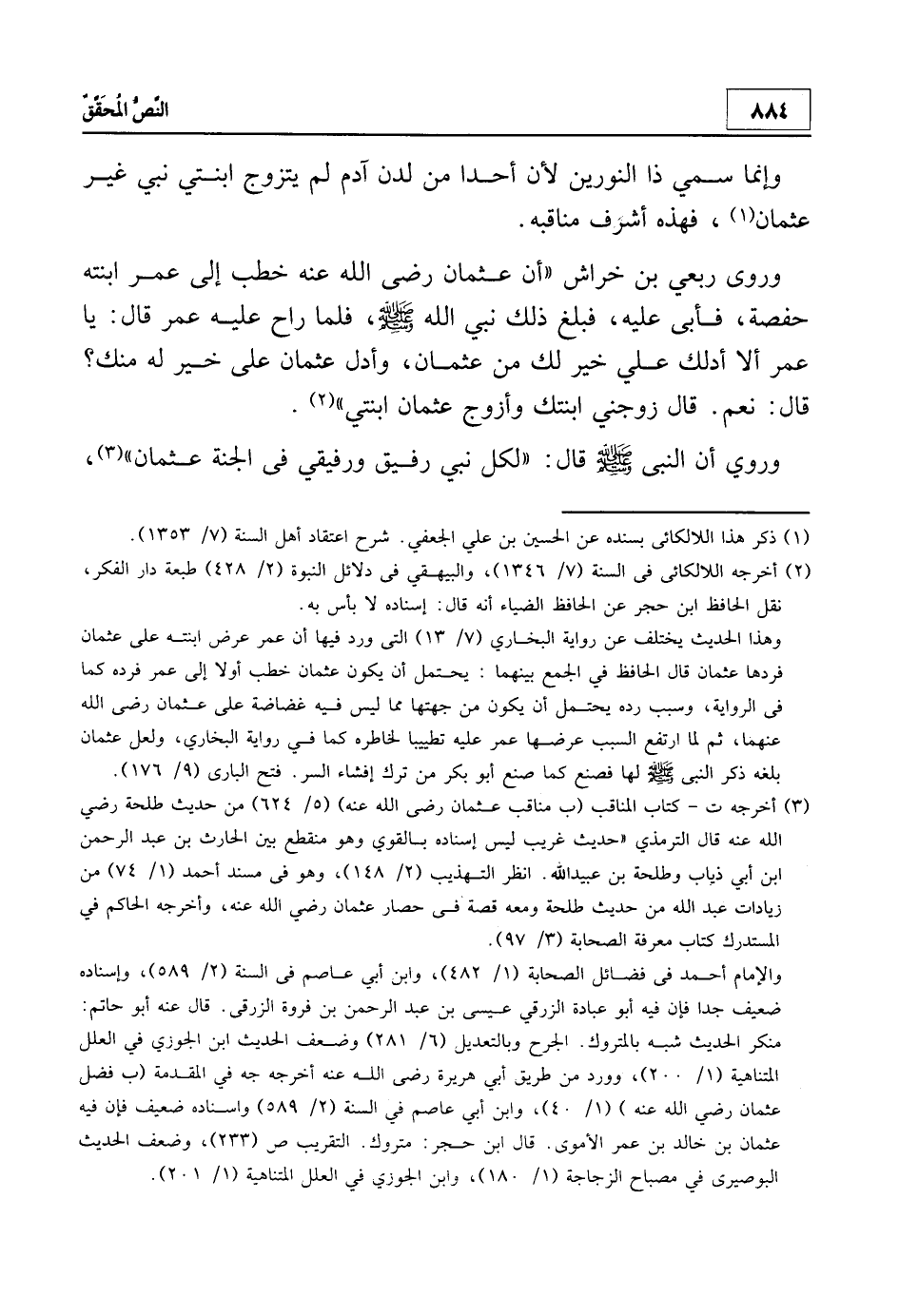 وإنما سمي ذا النوريين لأن أحدا من لدن آدم لم يتزوج ابنتي نبي غير عثمان1، فهذه أشرف مناقبه.