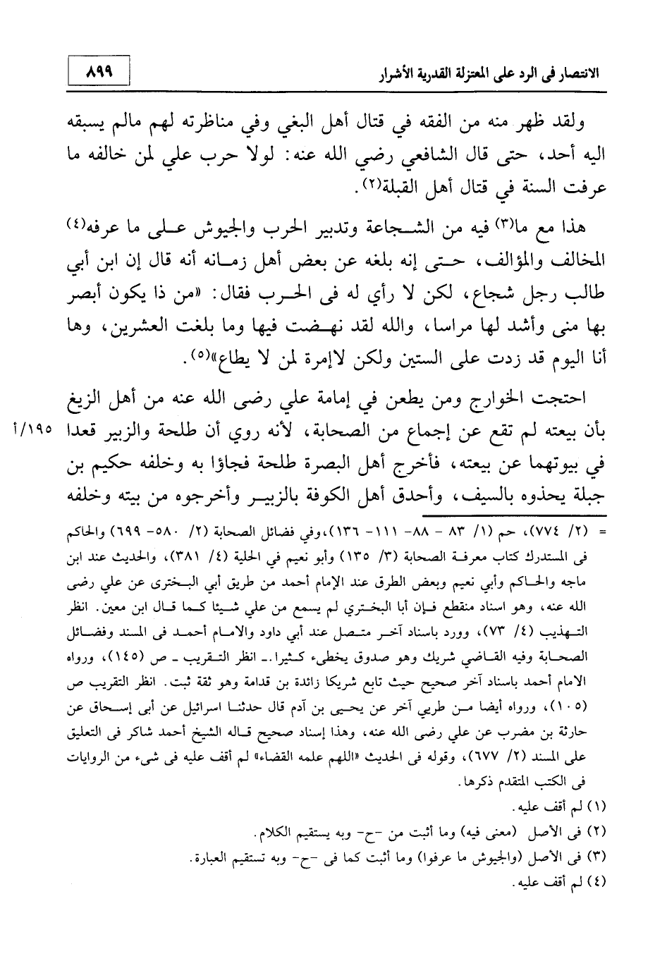 ولقد ظهر منه من الفقه في قتال أهل البغي وفي مناظرته لهم ما لم يسبقه إليه أحد، حتى قال الشافعي - رضي الله عنه -: لولا حرب علي لمن خالفه ما عرفت السنة في قتال أهل القبلة1.