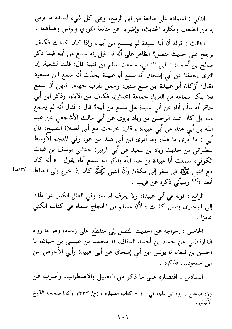 الرابع: قوله في أبي عبيدة: ولا يعرف اسمه، وفي العلل الكبير عزا ذلك