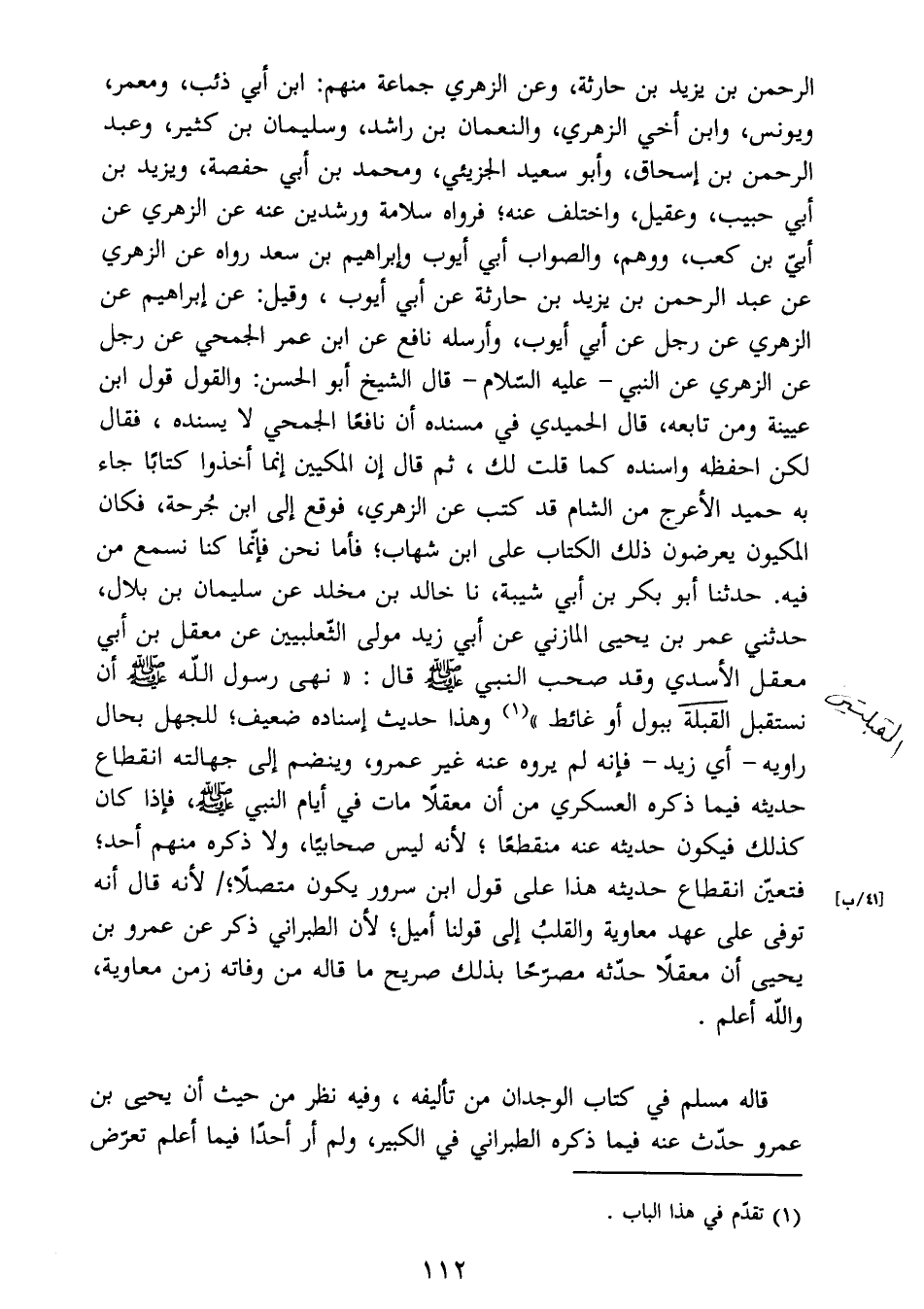 قاله مسلم في كتاب الوجدان من تأليفه، وفيه نظر من حيث أن يحيى بن