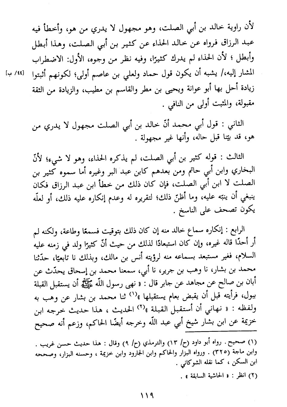 الثاني: قول أبي محِمد أنّ خالد بن أبي الصلت مجهول لا يدري من