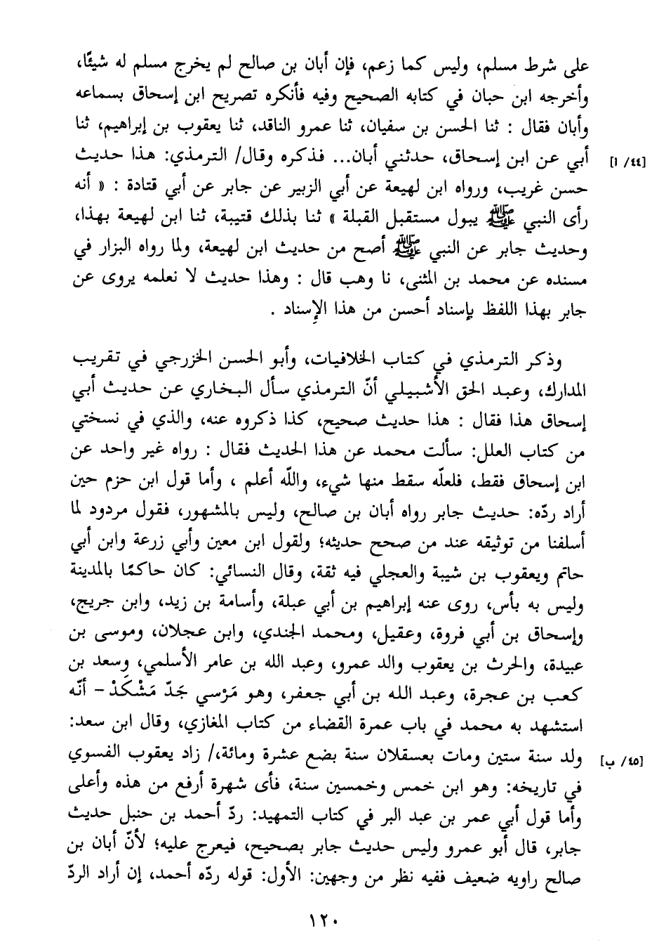 أراد ردّه: حديث جابر رواه أبان بن صالح، وليس بالمشهور، فقول مردود لما