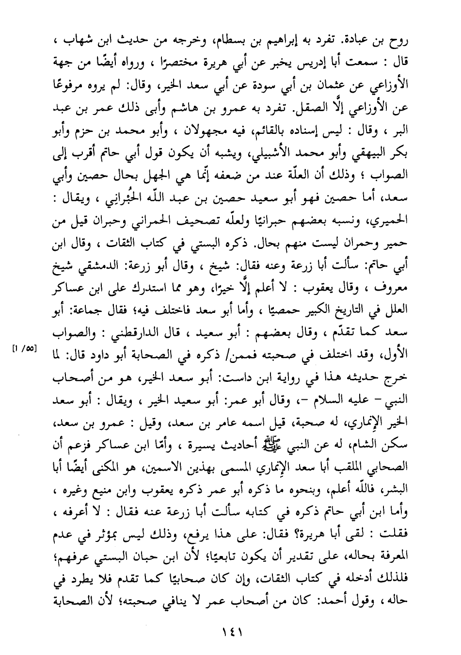 بكر البيهقي وأبو محمد الأشبيلي، ويشبه أن يكون قول أبي حاتم أقرب إلى