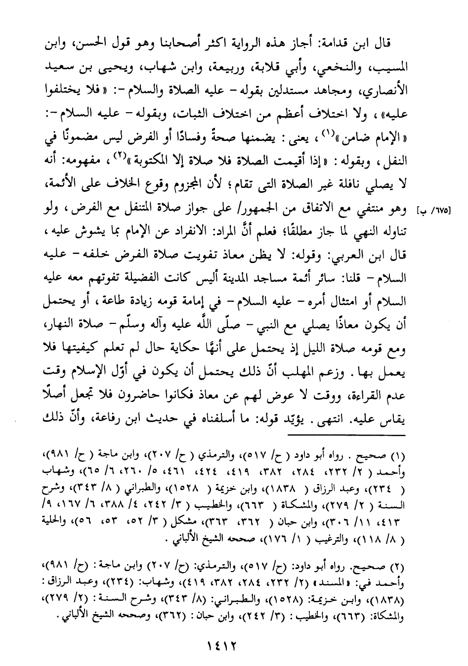 قال ابق قدامة: أجاز هذه الرواية أكثر أصحابنا وهو قول الحسن، وابق