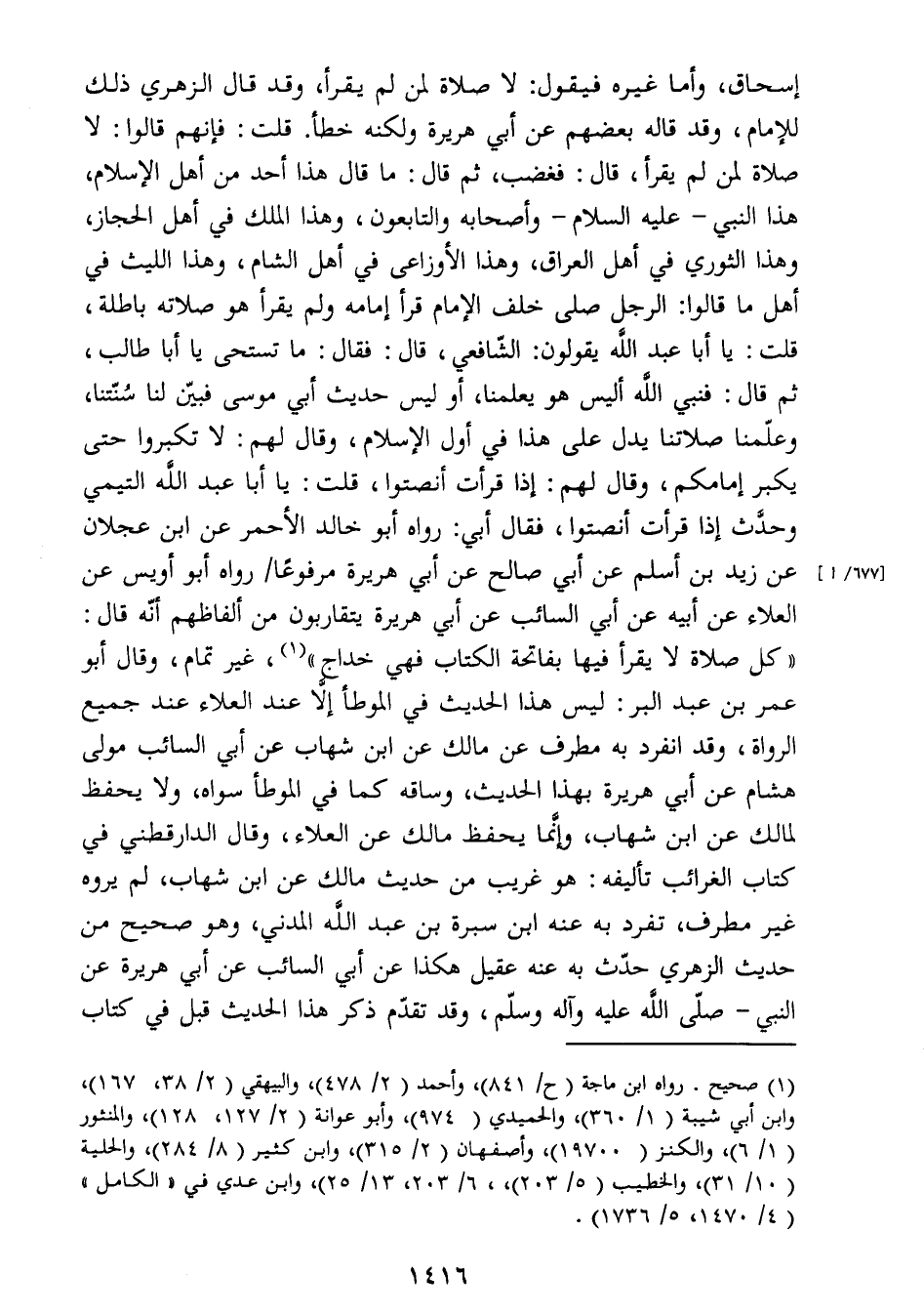 إسحاق، وأما غيره فيقول: لا صلاة لمن لم يقرأ، وقد قال الزهري ذلك