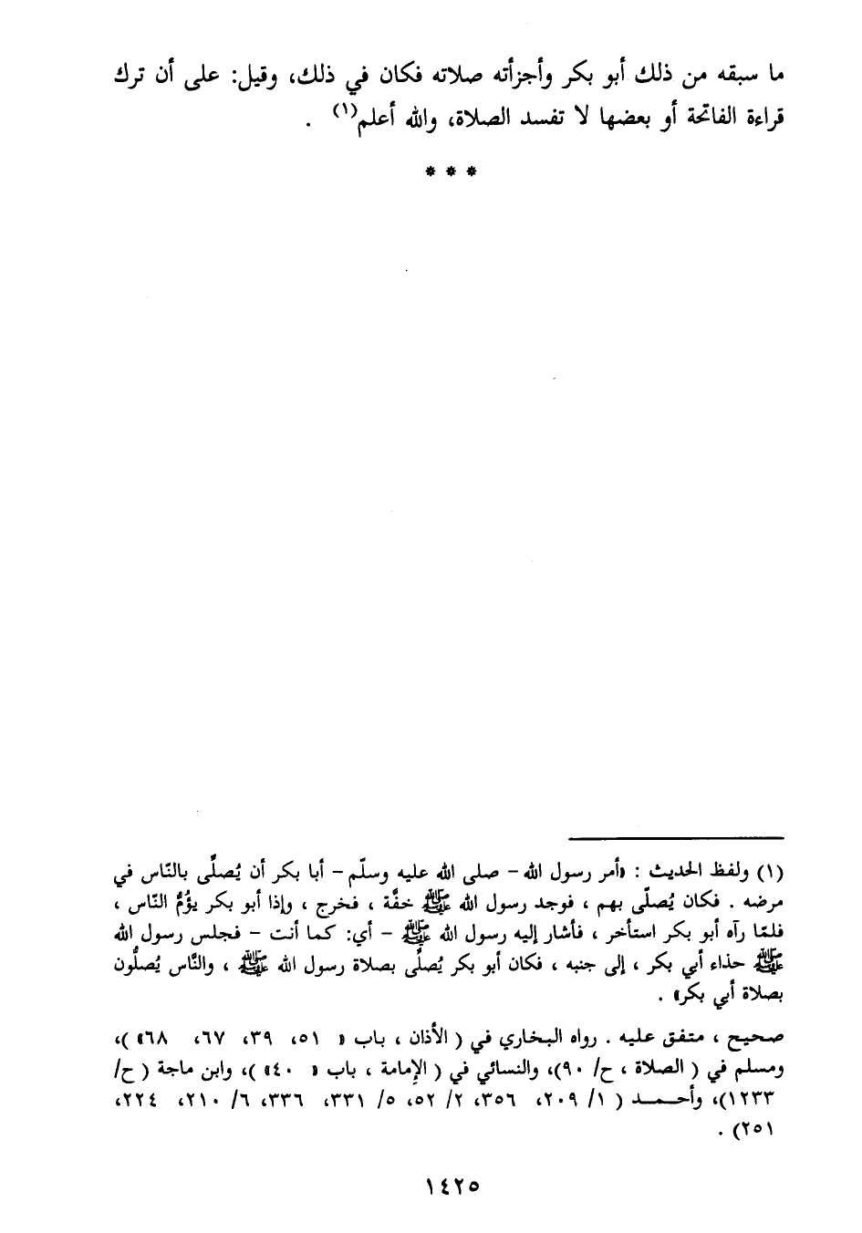 بصلاة أبي بكر ".