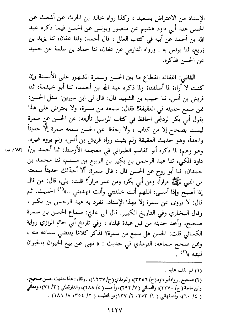 بقول أبي بكر الردنجى الحافظ في كتاب المراسيل تأليفه: عن الحسن عبئ سمرة