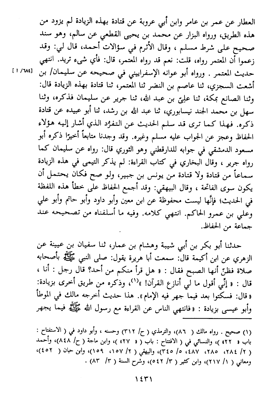 يكون سوى الفاتحة، وقال البيهقي: وقد أجمع الحفاظ على خطأ هذه اللفظة
