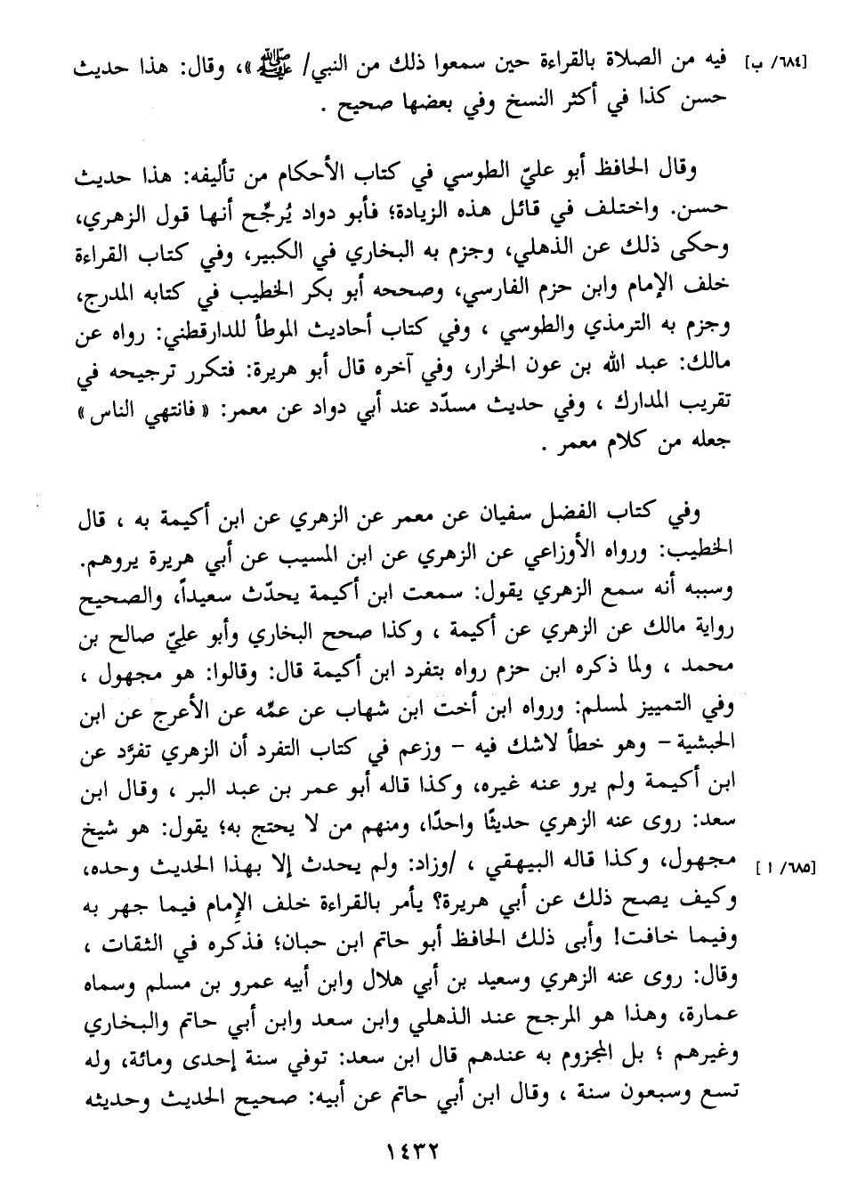 خلف الإمام وابن جزم الفارسي، وصححه أبو بكر الخطيب في كتابه المدرج،