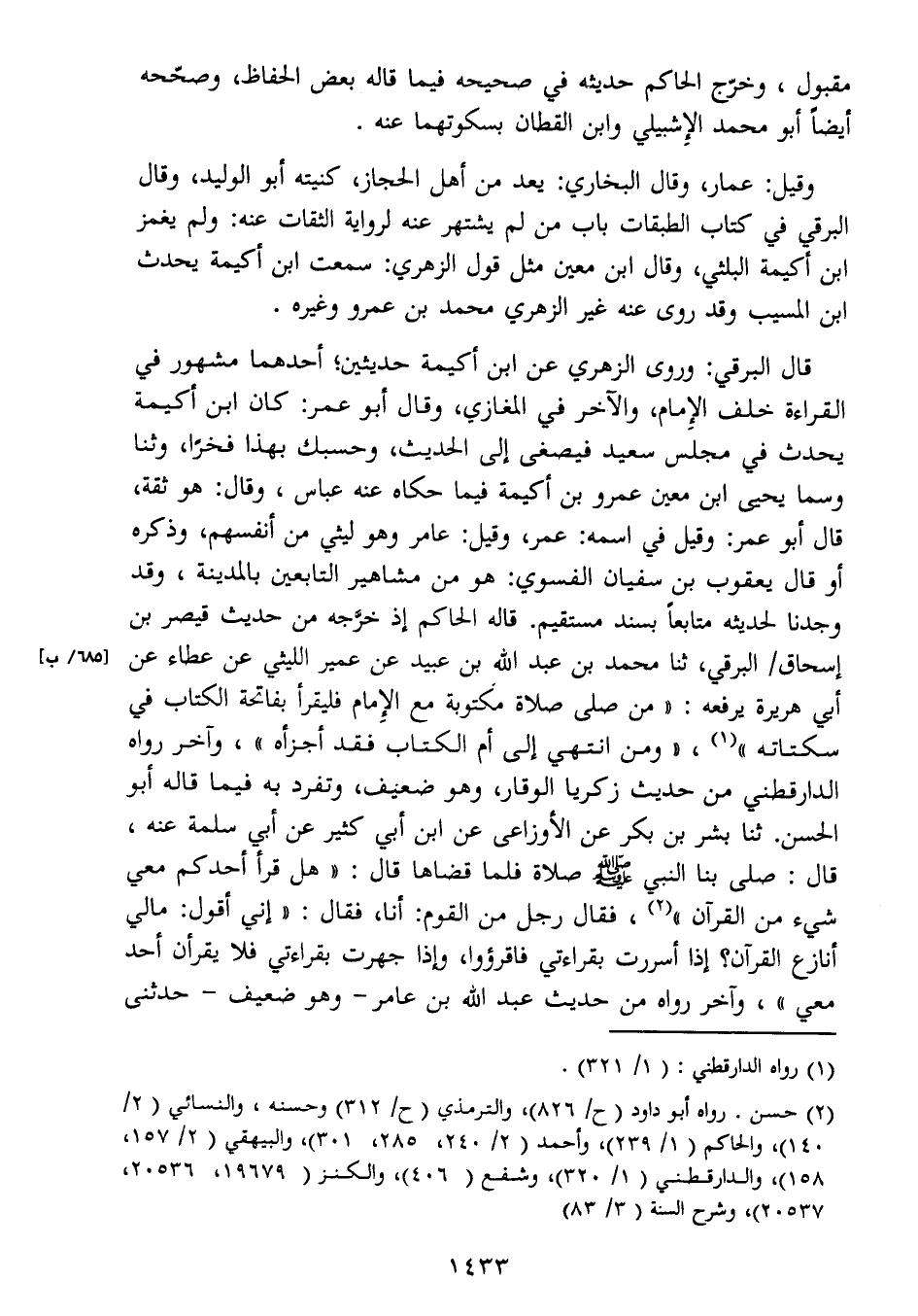 سكتاته " (1) ، " ومن انتهي إلى أم الكتاب فقد أجزأه "، وآخر رواه