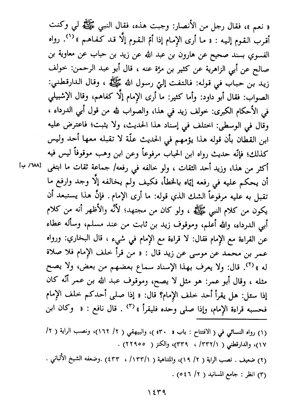 (1) رواه النسائي في (الافتتاح: باب " 30 ") ، والبيهقي (2/162) ، ونصب الراية (2/