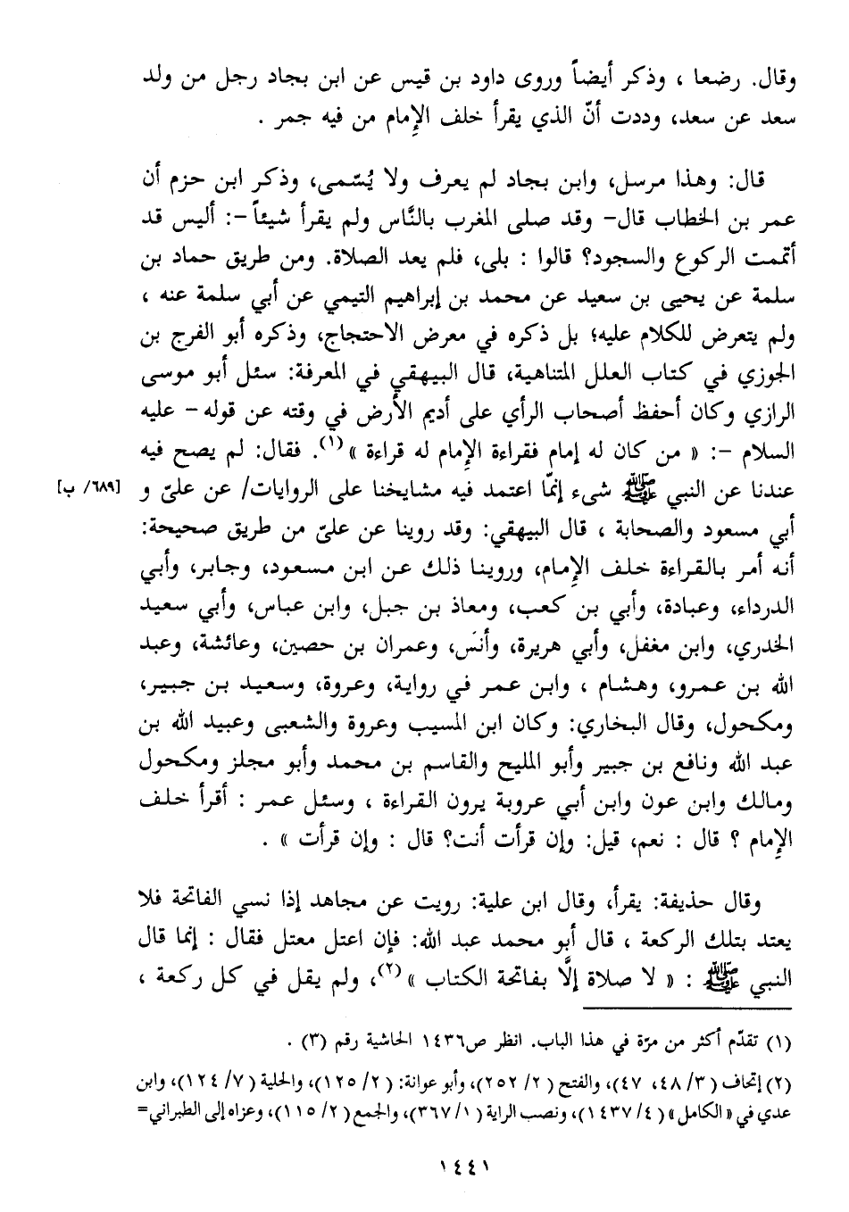 ومالك وابن عون وابن أبي عروبة يرون القراءة، وسئل عمر: أقرأ خلف