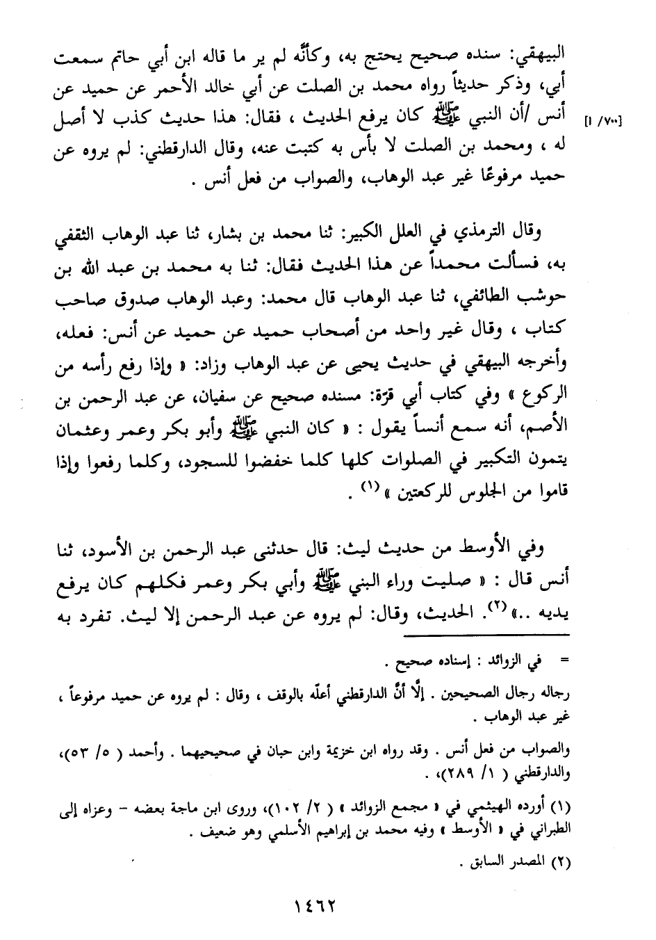 أنس قال: " صليت وراء النبي صَلَّى اللَّهُ عَلَيْهِ وَسَلَّمَ وأبي بكر وعمر فكلهم كان يرفع