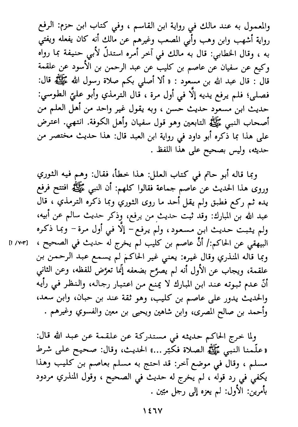 والمعمول به عند مالك في رواية ابن القاسم، وفي كتاب ابن حزم: الرفع