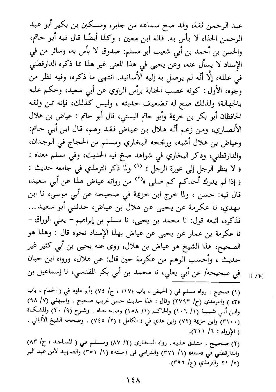 عبد الرحمن ثقة، وفد صح سماعه من جابر، ومسكين بن بكير أبو عبد