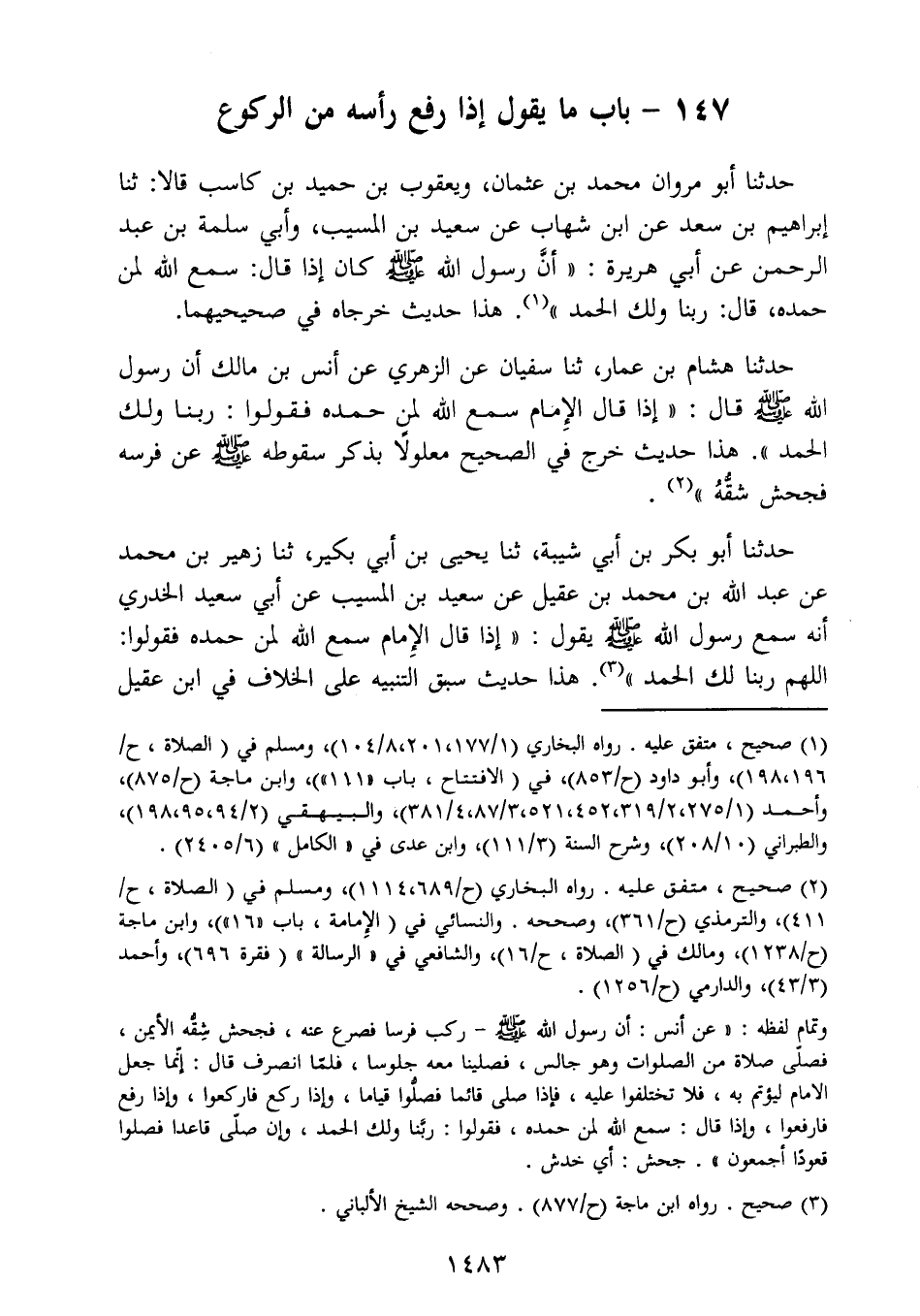 147- باب ما يقول إذا رفع رأسه من الركوع