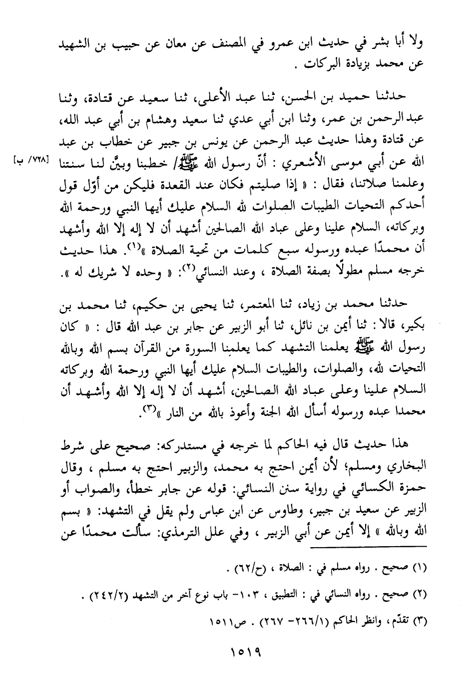 (2) صحيح. رواه النسائي في: التطبيق، 103- باب نوع آخر من التشهد (2/242) .