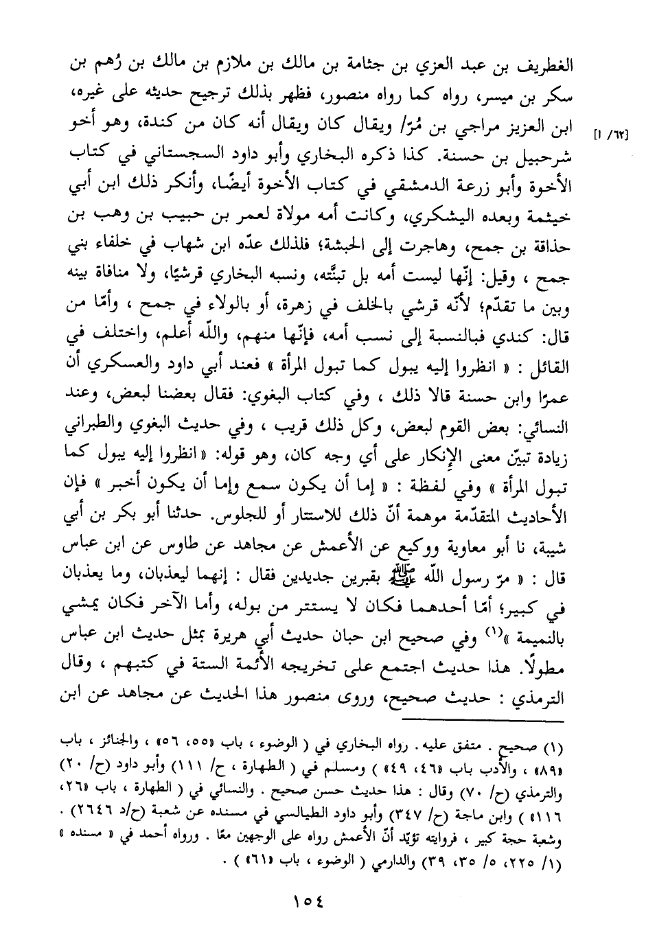 تبول المرأة " وفيَ لفظة: " إما أن يكون سمع وإما أن يكون أخبر " فإن