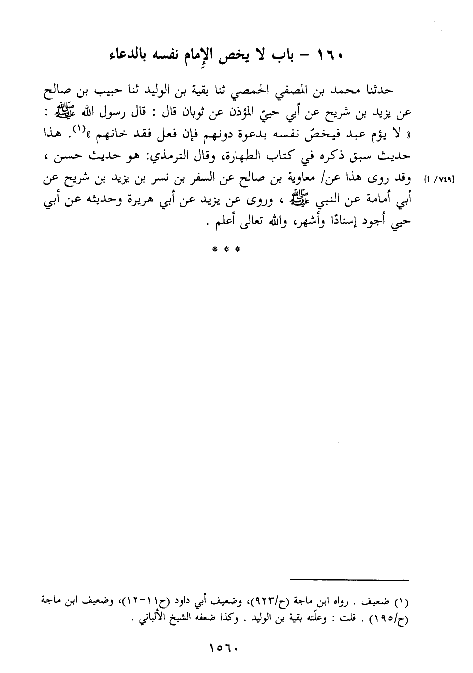 160- باب لا يخص الإِمام نفسه بالدعاء