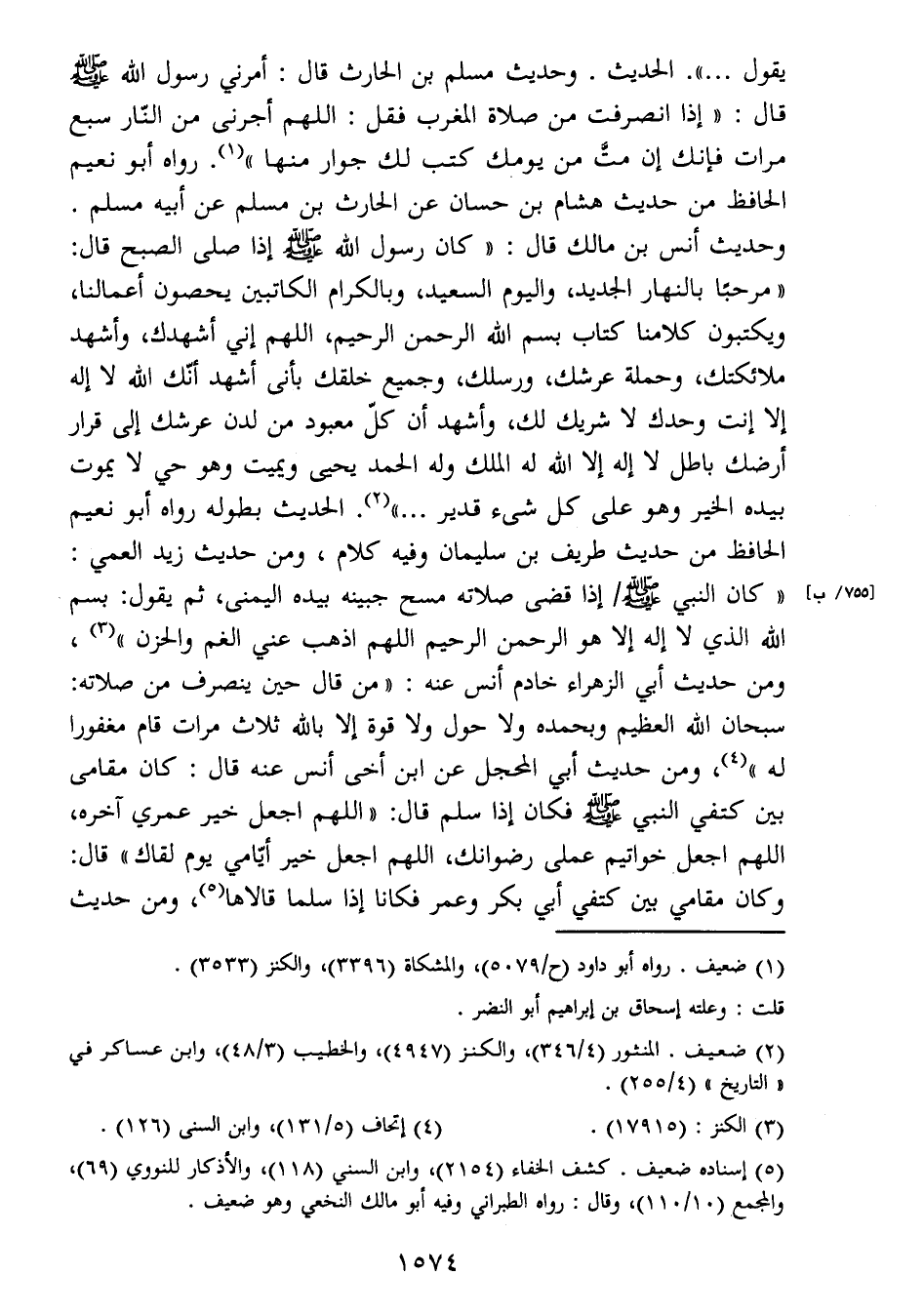 (5) إسناده ضعيف. كشف الخفاء (2154) ، وابن السني (118) ، والأذكار للنووي (69) ،