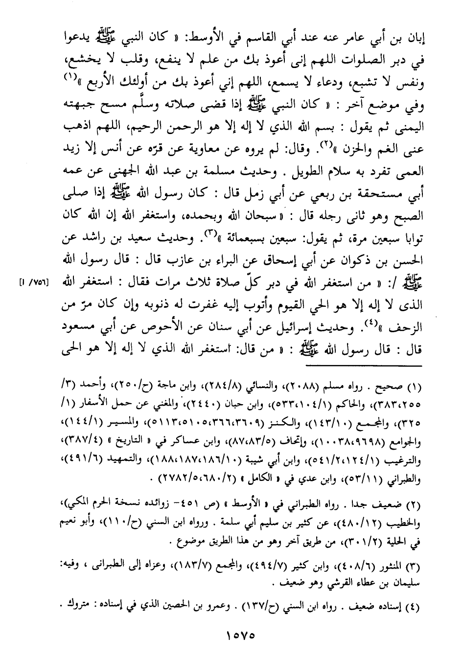 صَلَّى اللَّهُ عَلَيْهِ وَسَلَّمَ/: " من استغفر الله في دبر كلّ صلاة ثلاث مرات فقال: استغفر الله