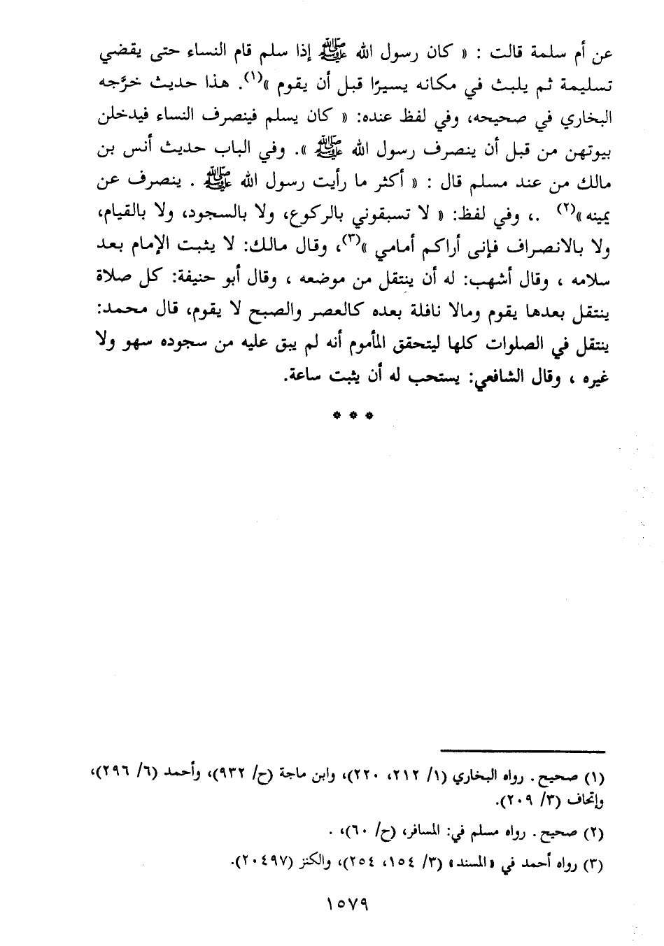 تسليمة ثم يلبث في مكانه يسيرًا قبل أن يقوم " (1) . هذا حديث خرجه