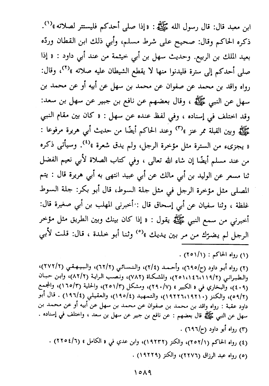 ابن معبد قال: قال رسول الله صَلَّى اللَّهُ عَلَيْهِ وَسَلَّمَ: " إذا صلى أحدكم فليستتر لصلاته " (1) .