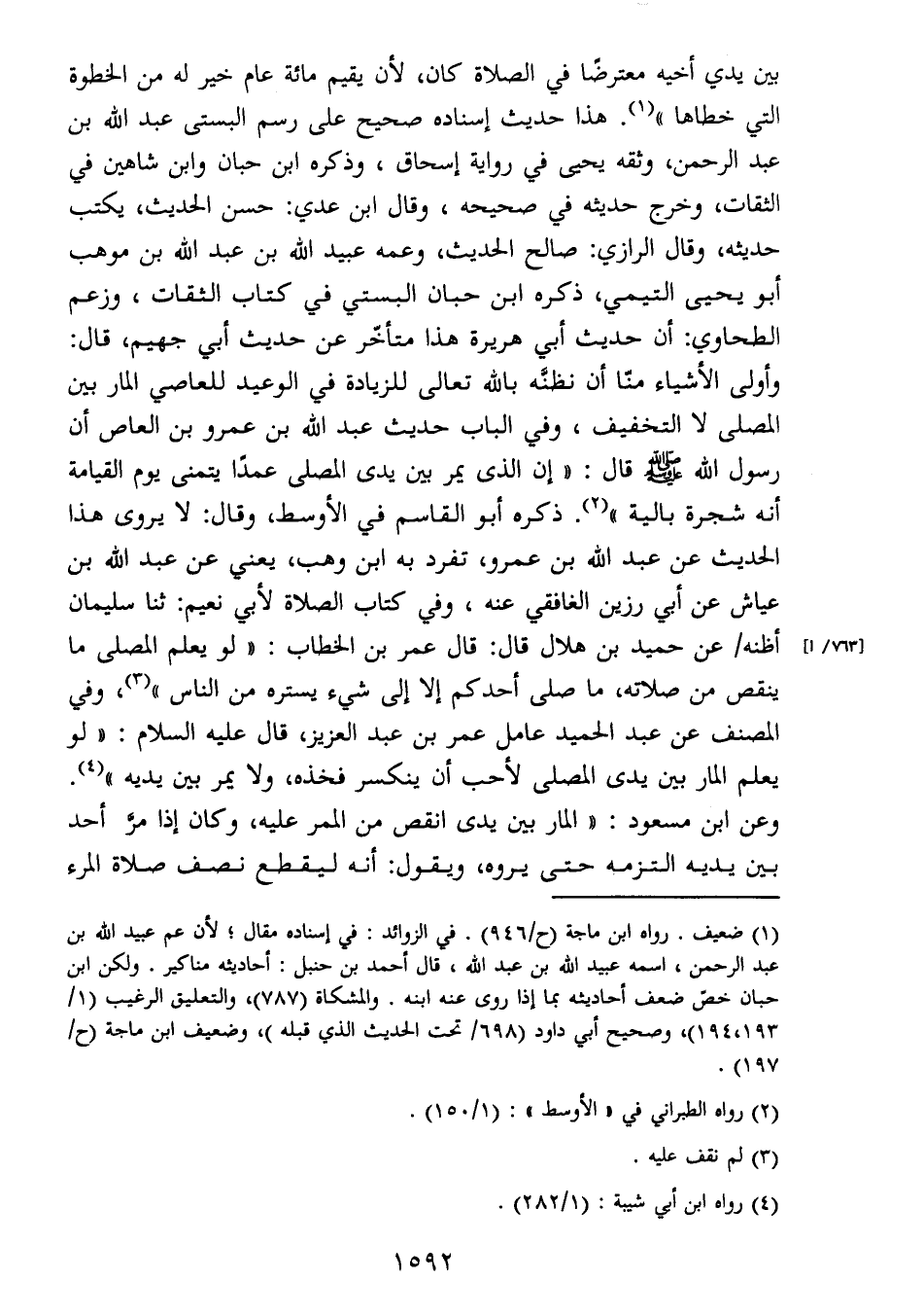 بين يدي أخيه معترضا في الصلاة كان، لأن يقيم مائة عام خير له من الخطوة