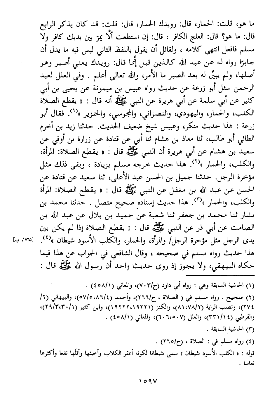 والكلب، والحمار " (2) . هذا حديث خرجه مسلم بزيادة، وبقى ذلك مثل
