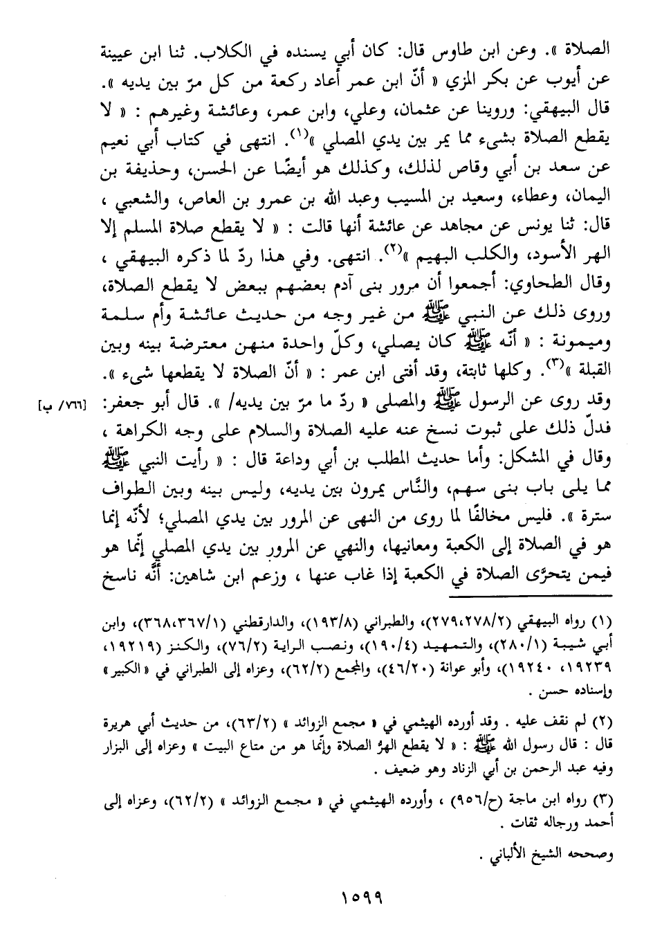 القبلة " (3) . وكلها ثابتة، وقد أفتى ابن عمر: " أنّ الصلاة لا يقطعها شيء ".