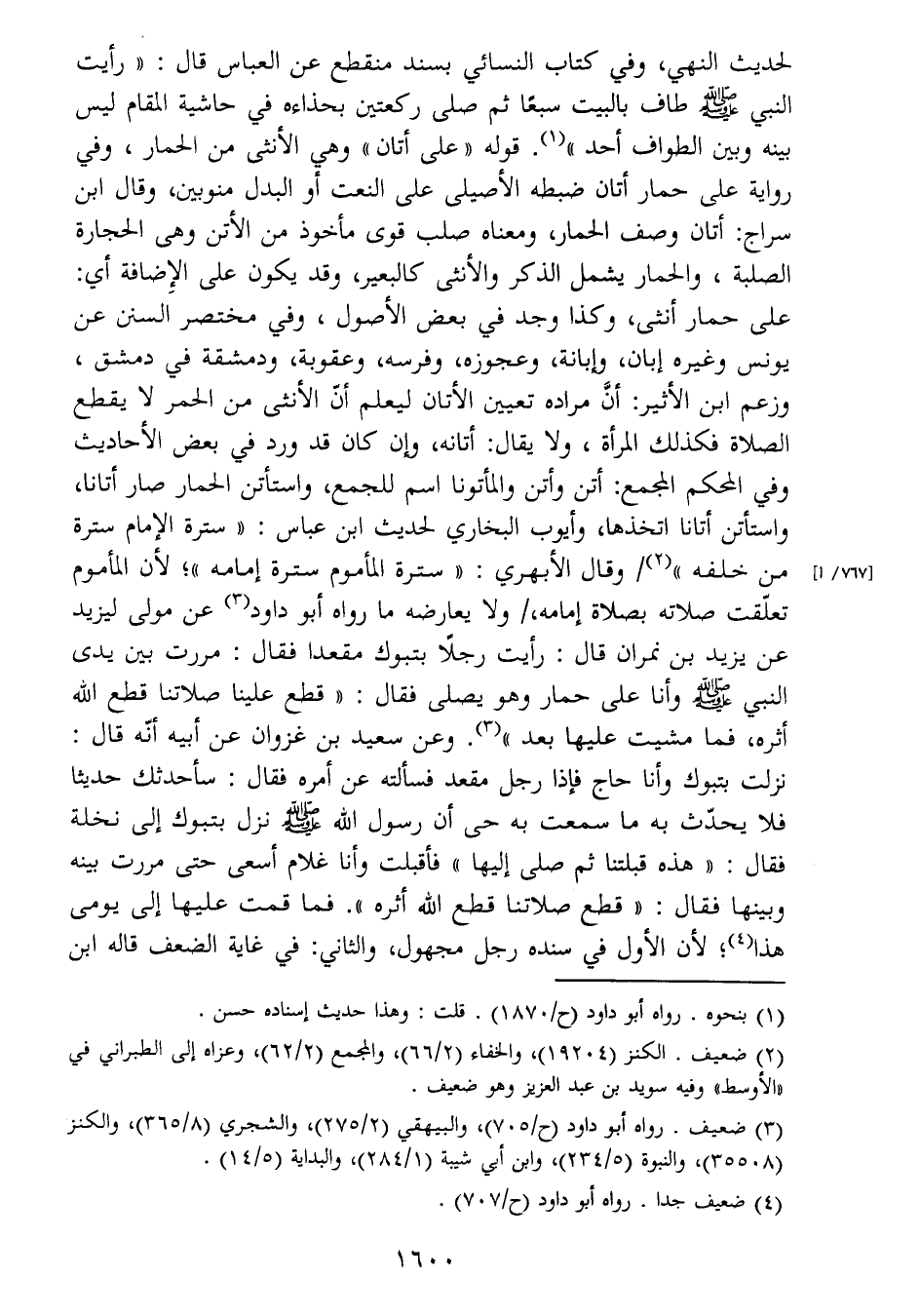 بينه وبن الطواف أحد " (1) . قوله " على أتان " وهي الأنثى من الحمار، وفي