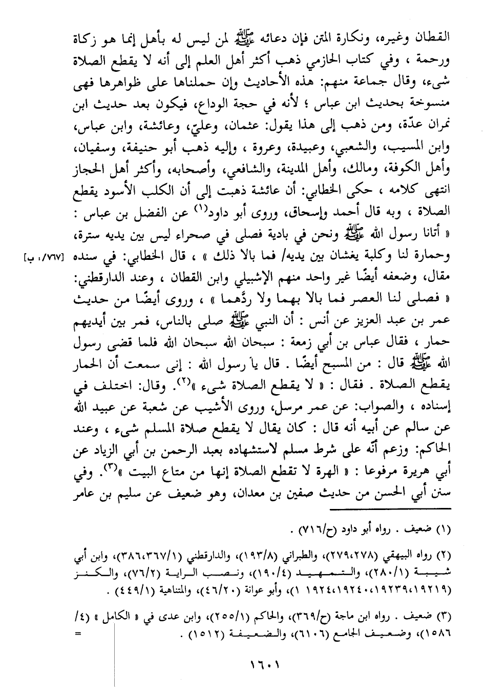 ورحمة، وفي كتاب الحازمي ذهب أكثر أهل العلم إلى أنه لا يقطع الصلاة
