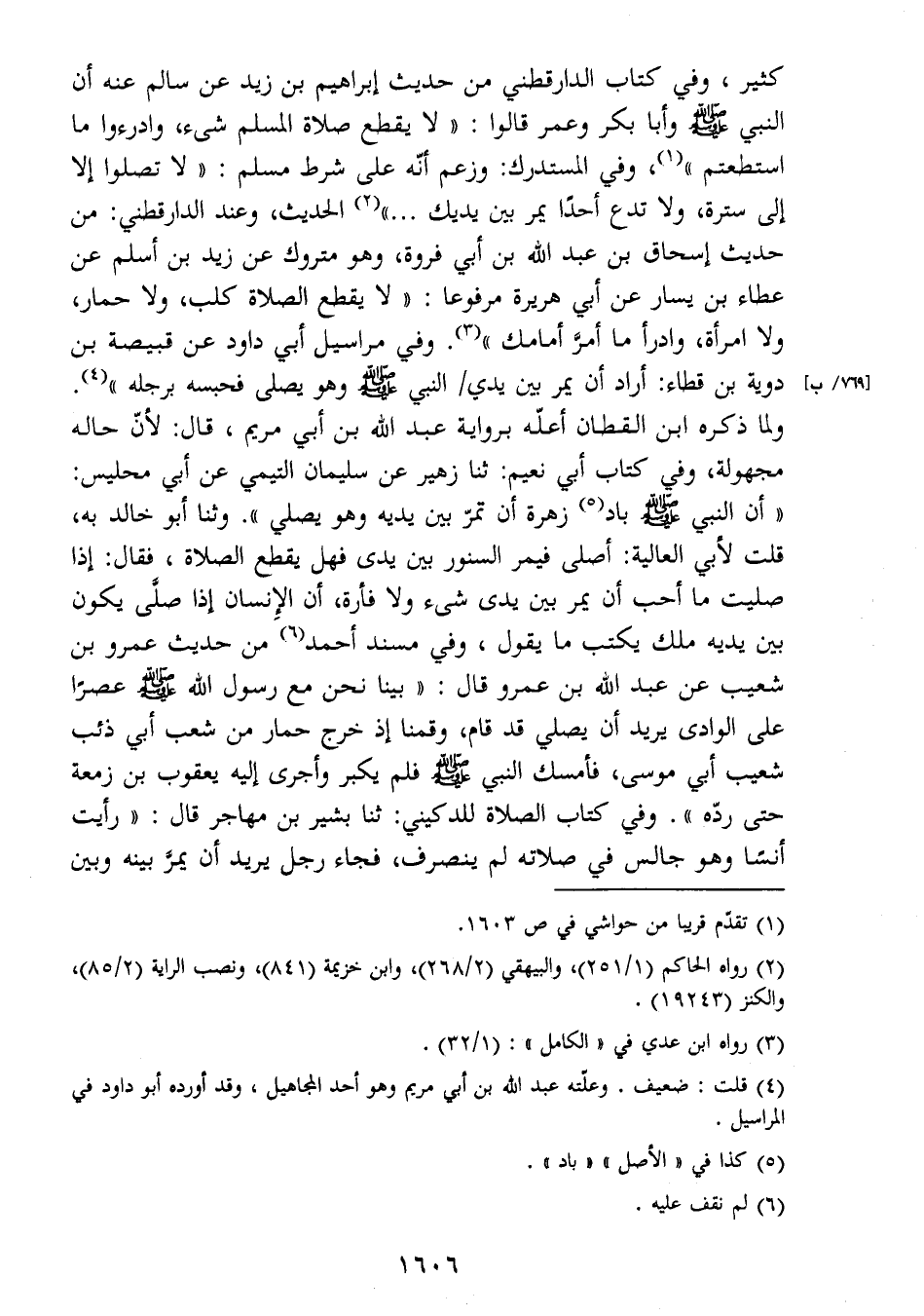 " أن النبي صَلَّى اللَّهُ عَلَيْهِ وَسَلَّمَ باد (5) زهرة أن تمرّ بين يديه وهو يصلي ". وثنا أبو خالد به،