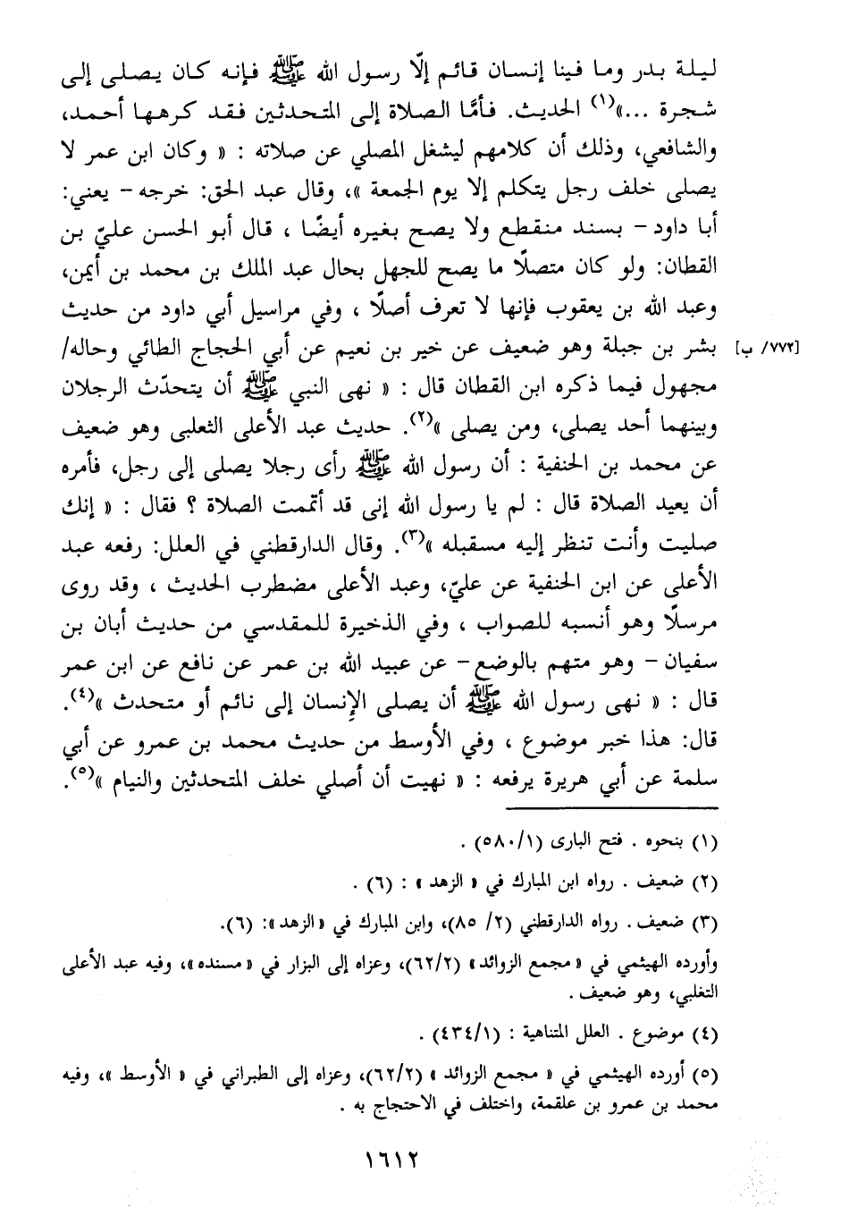 والشافعي، وذلك أن كلامهم ليشغل المصلي عن صلاته: " وكان ابن عمر لا