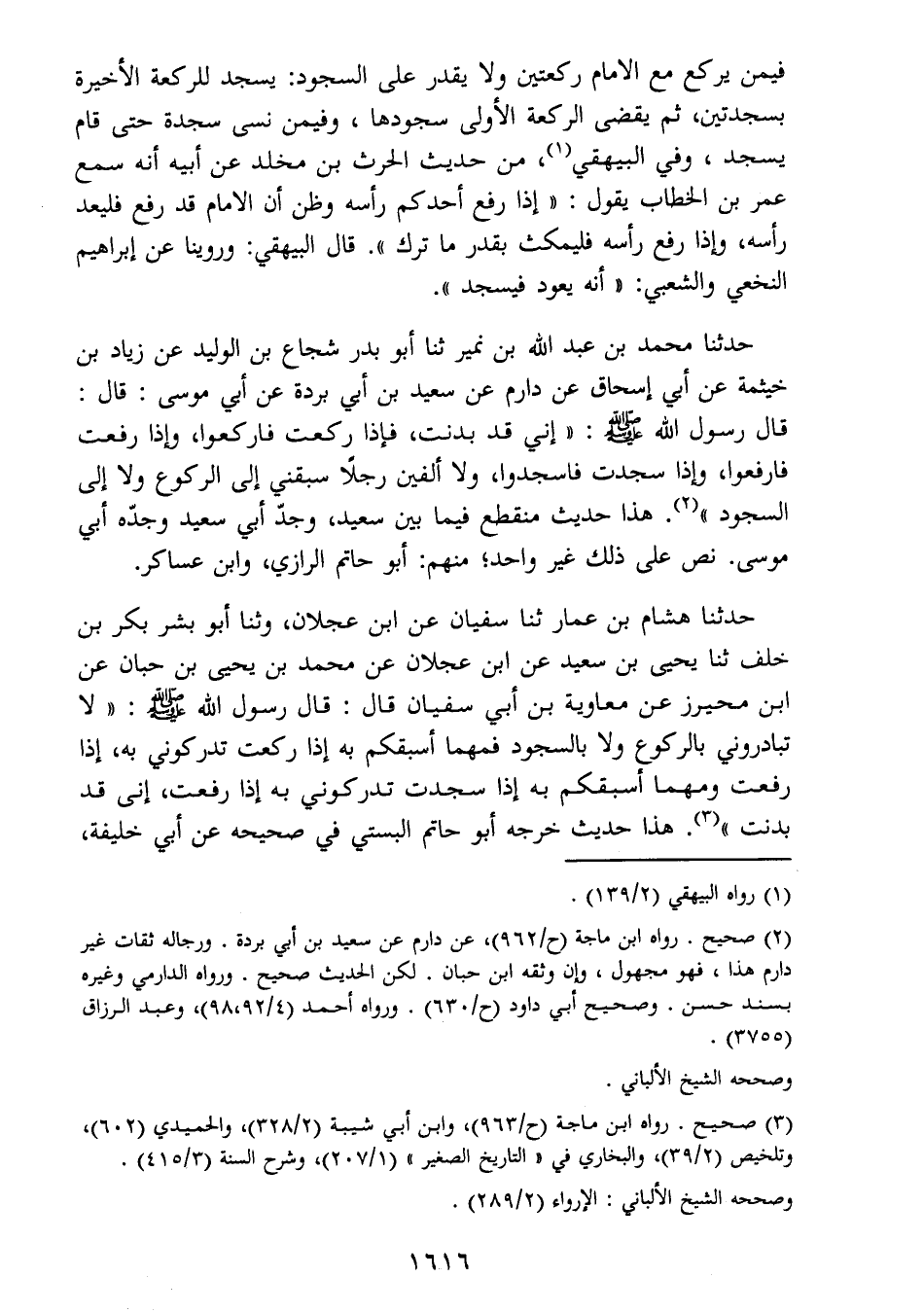 رأسه، وإذا رفع رأسه فليمكث بقدر ما ترك ". قال البيهقي: وروينا عن إبراهيم