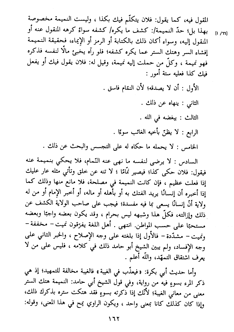 السادس: لا يرضى لنفسه ما نهى عنه النّمام، فلا يحكي بنميمة عمه