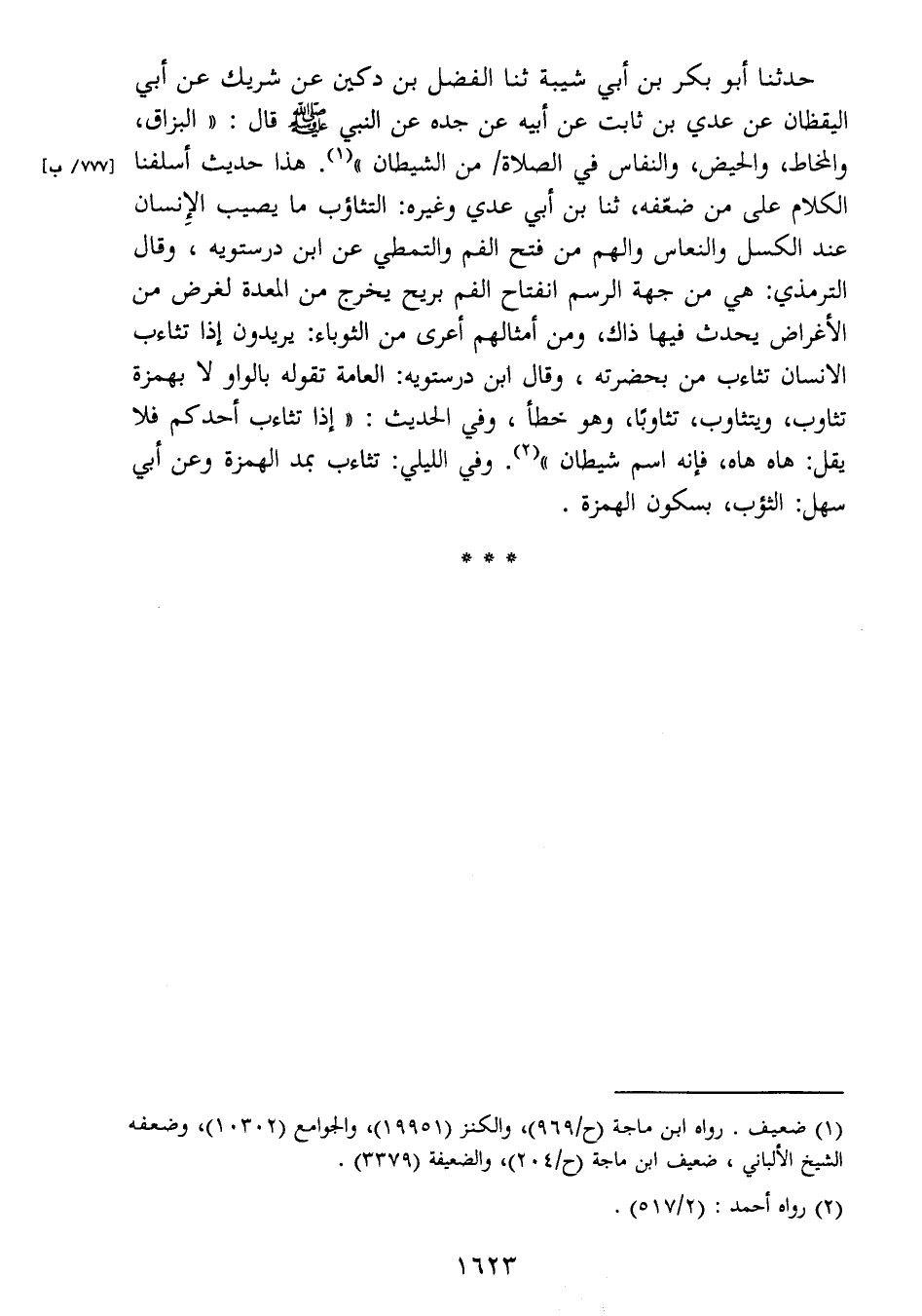 الكلام على من ضعّفه، ثنا بن أبي عدي وغيره: التثاؤب ما يصيب الإنسان