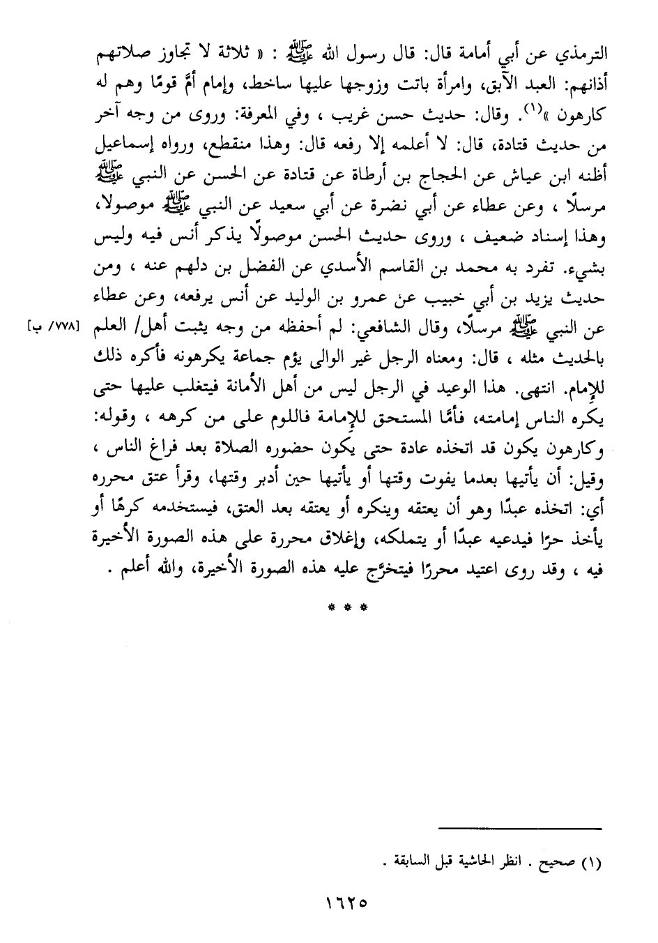 الترمذي عن أبي أمامة قال: قال رسول الله صَلَّى اللَّهُ عَلَيْهِ وَسَلَّمَ: " ثلاثة لا تجاوز صلاتهم