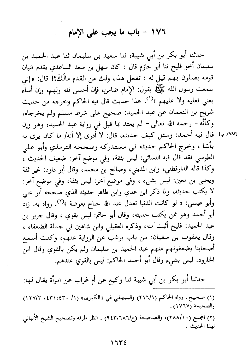 حدثنا أبو بكر بن أبي شيبة، ثنا سعيد بن سليمان ثنا عبد الحميد بن