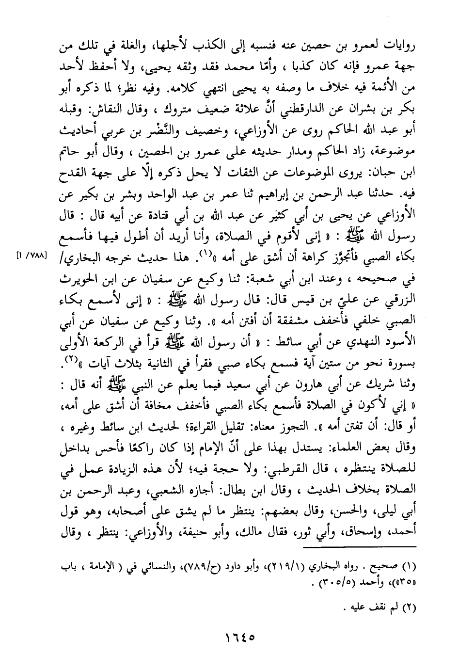 بكاء الصبي فأتجوَّز كراهة أن أشق على أمه " (1) . هذا حديث خرجه البخاري/