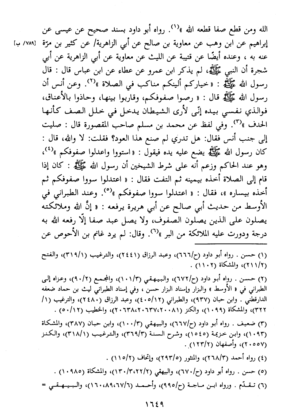 الله ومن قطع صفا قطعه الله " (1) . رواه أبو داود بسند صحيح عن عيسى عن