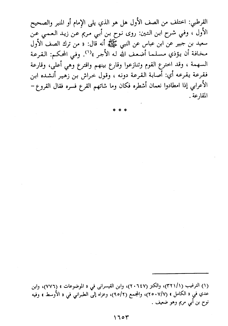 القرطبي: اختلف من الصف الأول هل هو الذي يلي الإِمام أو المنبر والصحيح