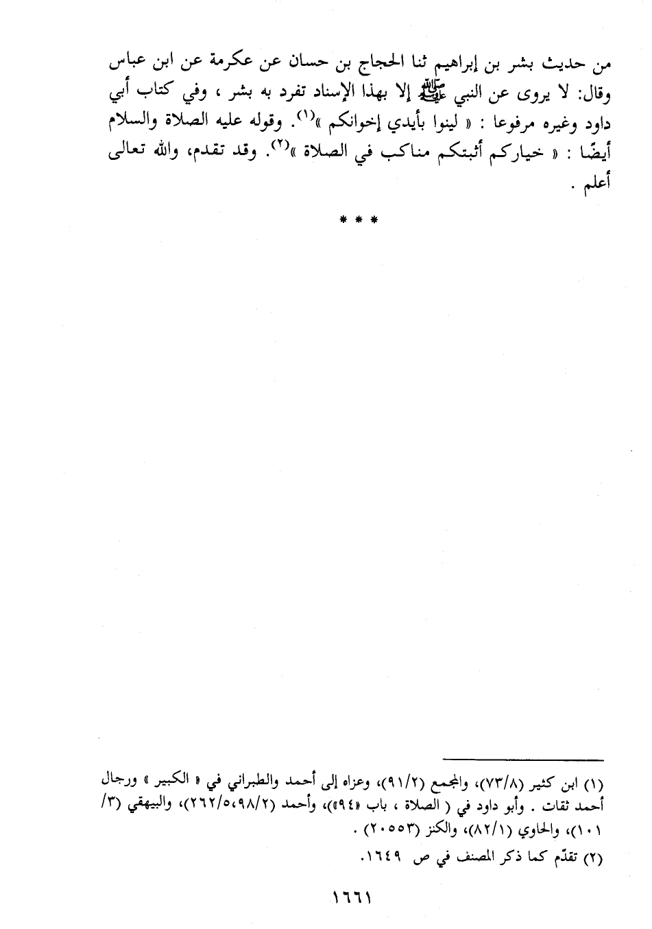 أيضَا: " خياركم أثبتكم مناكب في الصلاة " (2) . وقد تقدم، والله تعالى
