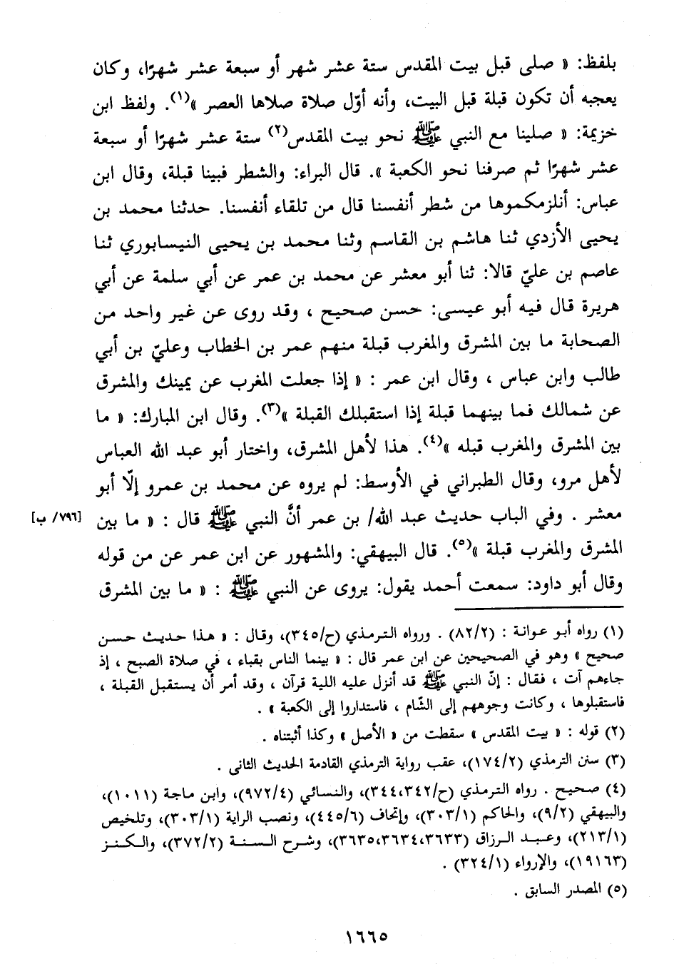 المشرق والمغرب قبلة " () . قال البيهقي: والمشهور عن ابن عمر عن من قوله
