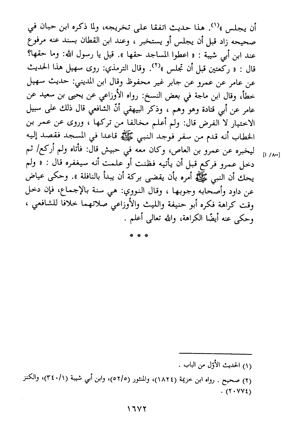 قال: " ركعتين قبل أن تجلس " (2) . وقال الترمذي: روى سهيل هذا الحديث