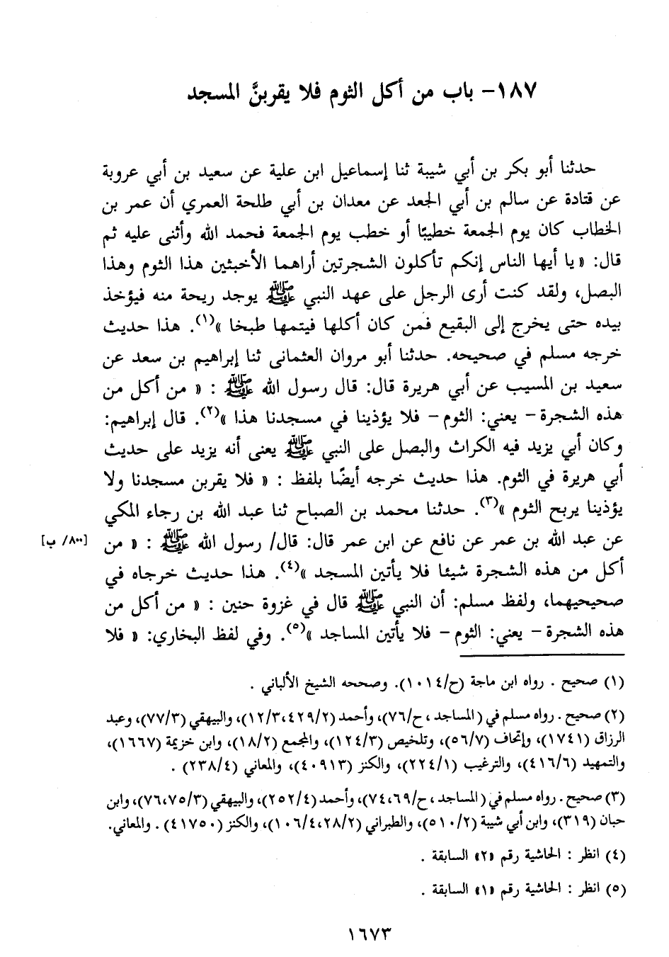 (2) صحيح. رواه مسلم في (المساجد، ح/76) ، وأحمد (2/429، 3/12) ، والبيهقي (3/77) ، وعبد