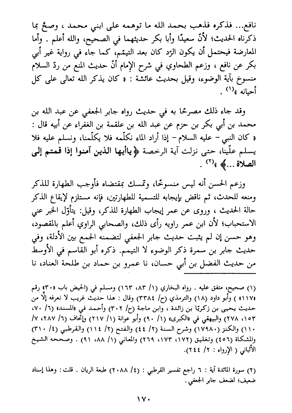 (2) سورة المائدة آية: 6 راجع تفسير القرطبي: (4/2088) طبعة الريان. قلت: وهذا إسناد